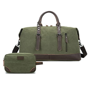 Logotipo personalizado Grande Capacidade Heavy Duty Canvas Travel Duffel Bag Set Weekend Holdall Bagagem Bag Com Sacos De Higiene Pessoal para Homens